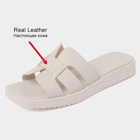 JOZHAMTA Size 34-40 Flats Slippers For Women Real Leather Low Heels Summer Shoes Woman 2023 Rome Slides Casual Platform Sandals